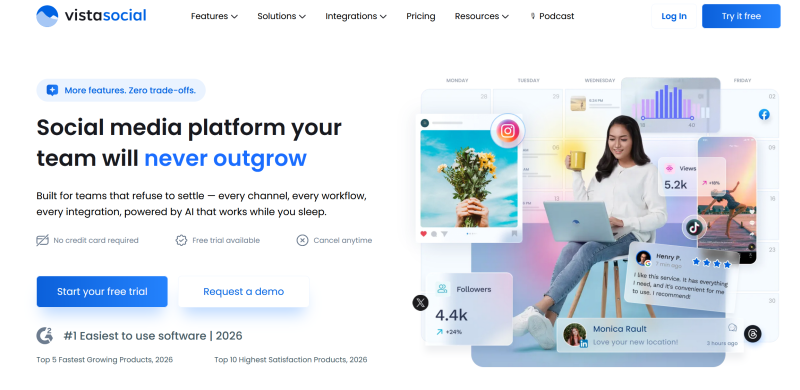 Vista Social is an intuitive social tool that simplifies and enhances every step of social media management. It streamlines the entire workflow, from content creation and scheduling to engagement, inbox management, and performance tracking, all within one centralized dashboard.