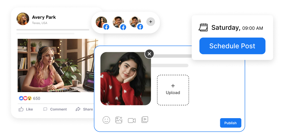 Multi-Account Management: Control multiple Facebook pages & profiles seamlessly from one unified dashboard.