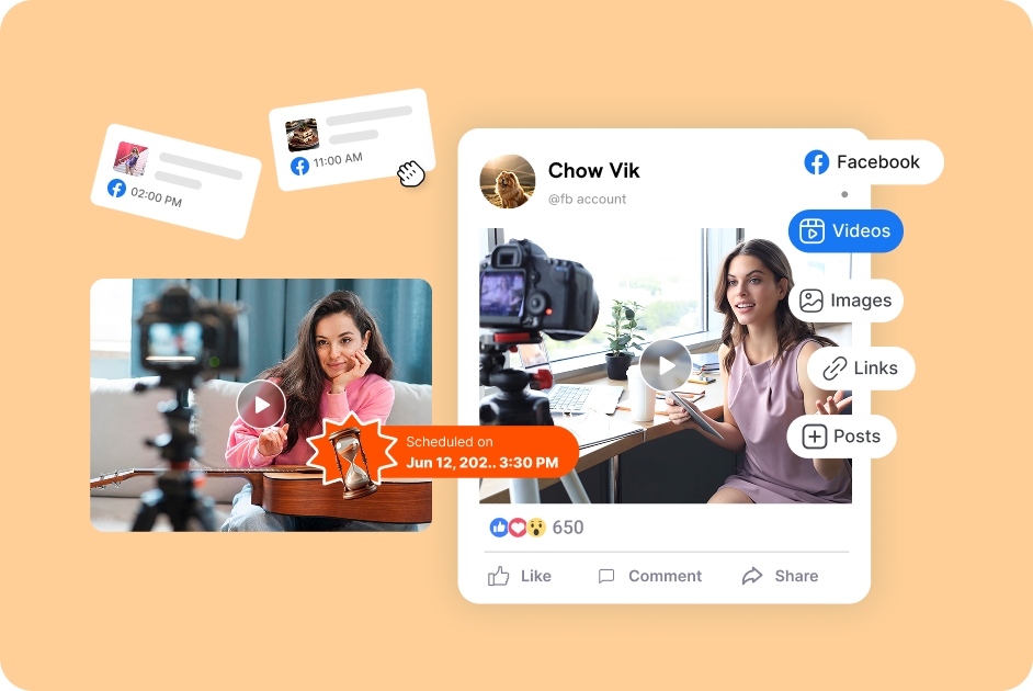 Upload and schedule Facebook videos directly from GudSho Social's dashboard.