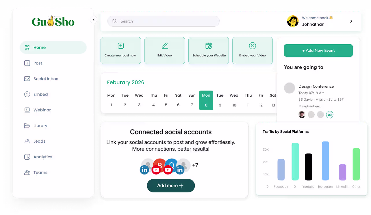 As a YouTuber or video creator, managing multiple videos and channels can be overwhelming. GUDSHO social allows you to automate video uploads across platforms to ensure you're reaching the right audience on time.