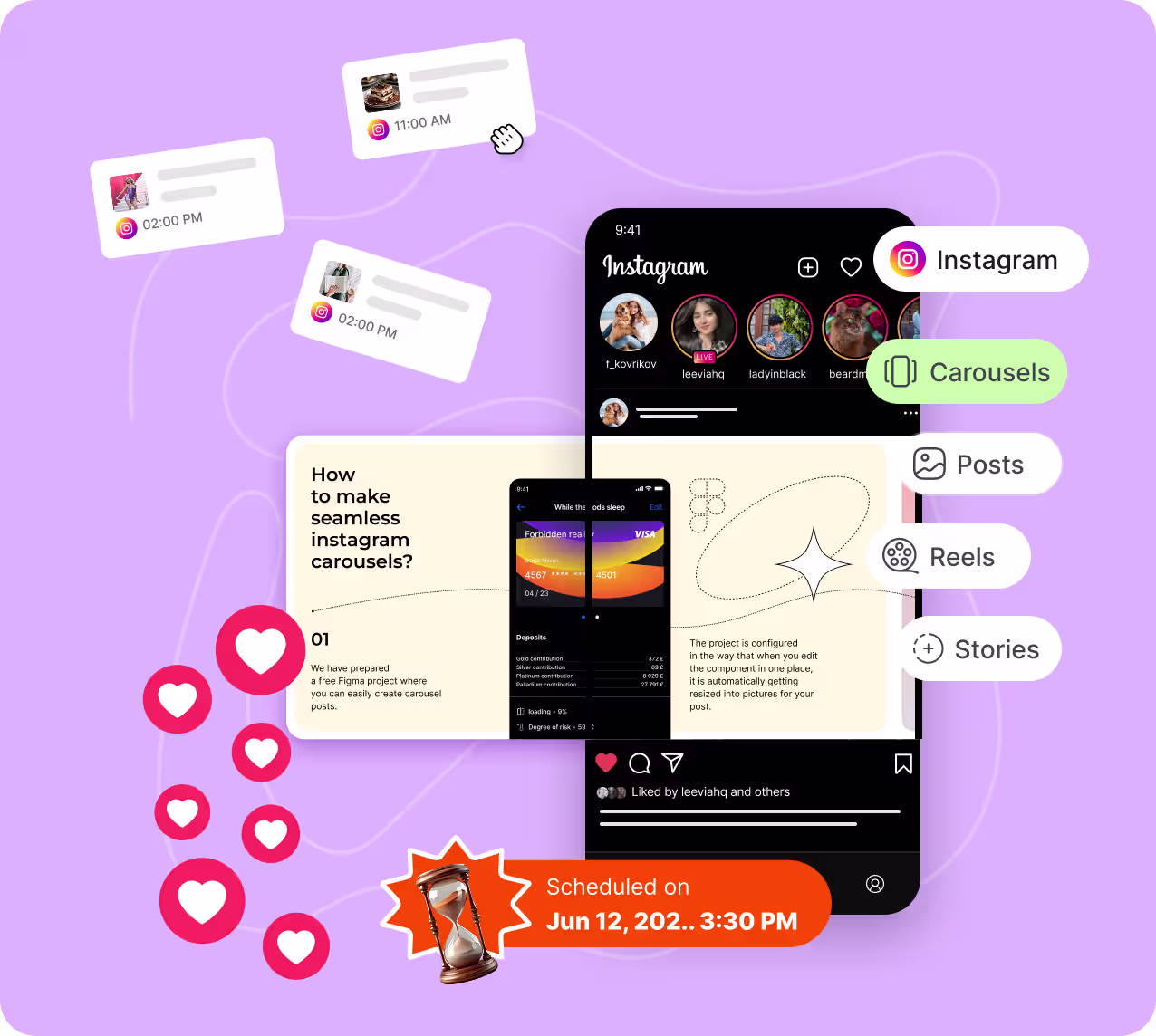 Schedule carousel posts at optimal times to increase reach and encourage your audience to view every slide.