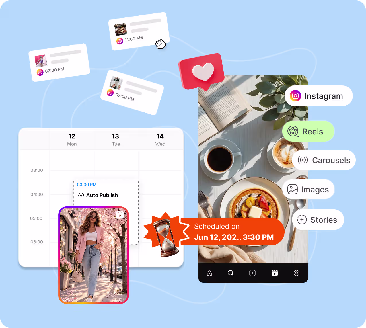 Streamline your Instagram workflow from planning to publishing and stay consistent at every step.
