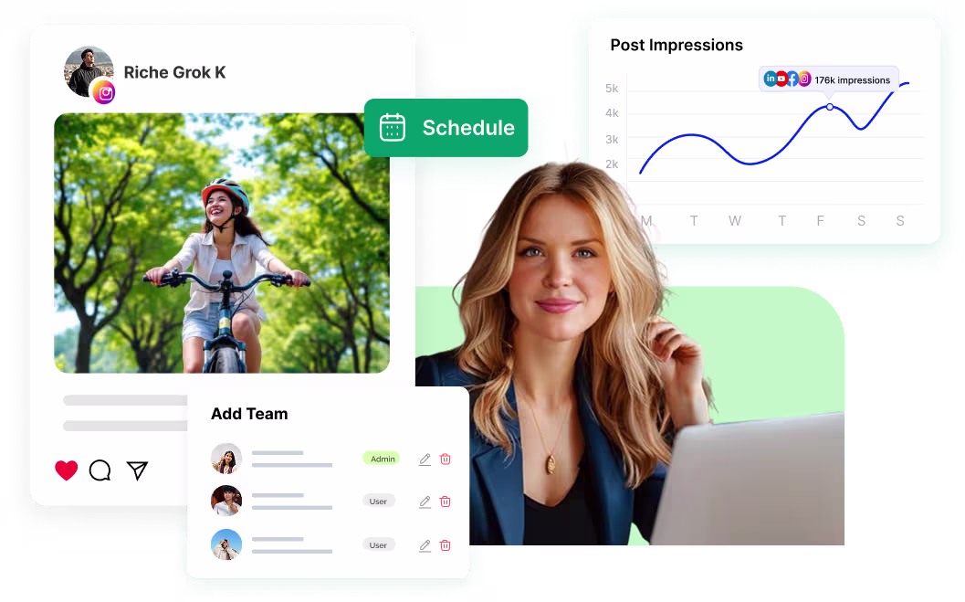 Streamline your social media management, boost engagement and save hours with smarter team workflows.
