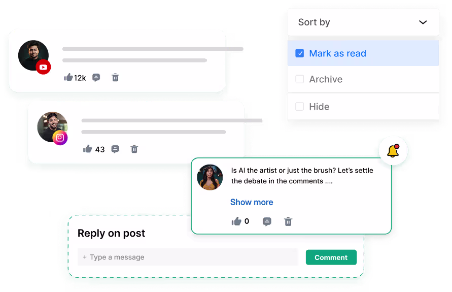 Consolidate all your social interactions in one place, making it easier to engage with your audience, respond to comments, and manage conversations across multiple platforms.