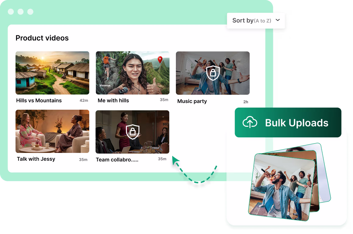 Quickly add videos with simple drag-and-drop or bulk uploads from cloud storage or local drives in minutes.